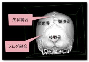 後頭部にある左右の頭頂の骨と後頭部をつなぐ「人字」型の頭蓋骨の継ぎ目です。